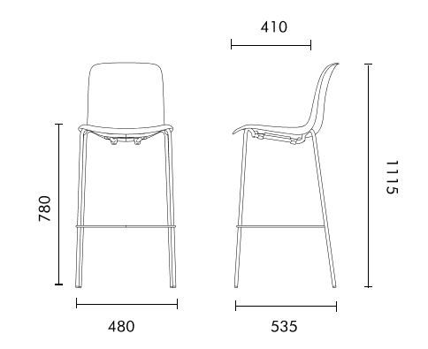 Bar stools from this collection look almost incredibly light and graceful. Feel free to look at the world from a little higher height. There are several variants of polypropylene (blue, yellow, white) or upholstery. Chair legs are available in black or white steel.