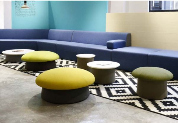 It looks like a mushroom and it is also a mushroom! That's why these pieces are called FUNGO. The collection includes pouffes, bar stools and coffee tables. Some also have storage space. Multifunctional pieces that find their use in the children's room, living room or public space.