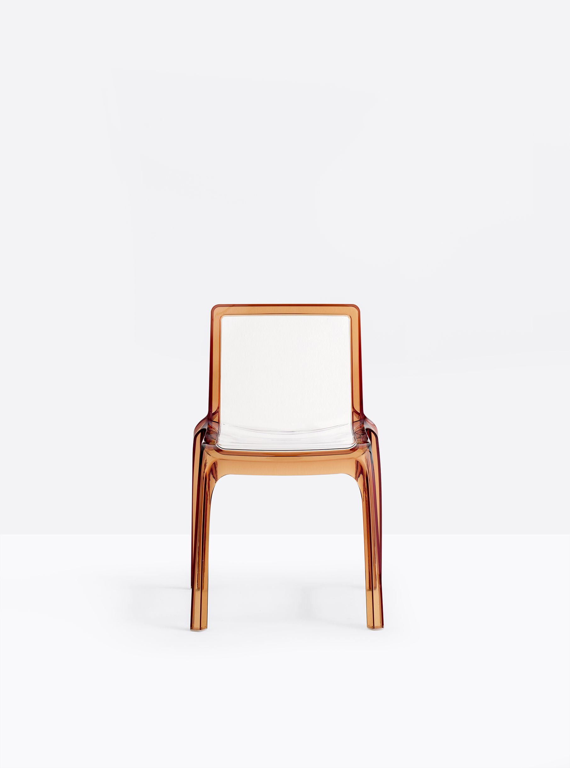 Stackable chair in polycarbonate. Ideal for contract, hospitality and residential use as well.