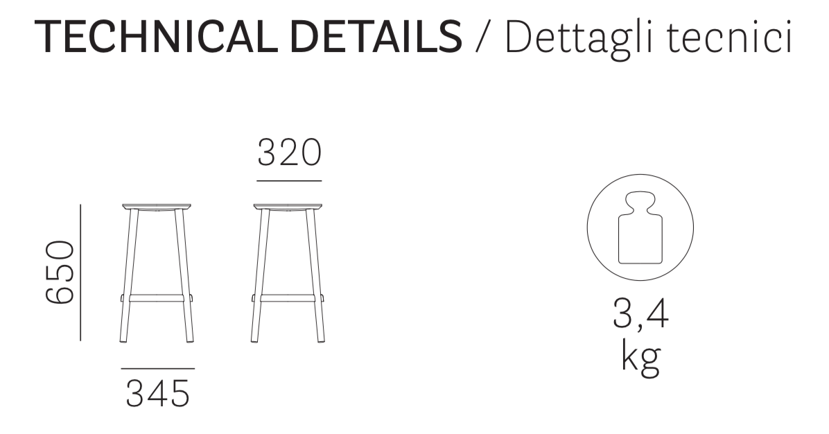 Ash wood barstool with an extreme lightweight look where the die-casted aluminium footrest is perfectly jointed to the legs. Height 650 mm.
