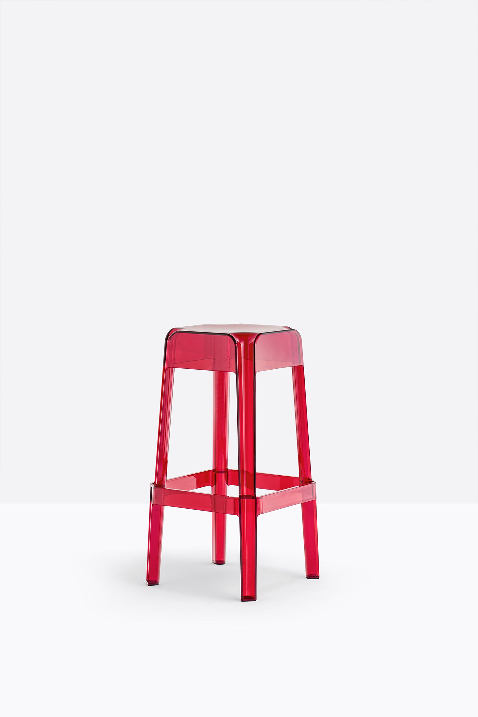 Rubik stool, with its thin, soft and slender lines, stands out for its easy functionality. Stackable stool fully made of polycarbonate and available in several finishes. Designed for both outdoor and indoor use.