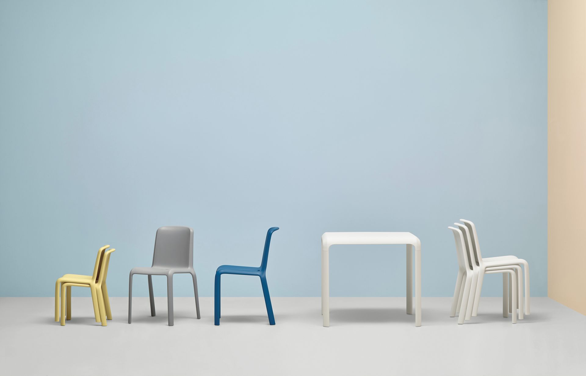 The playful shape, the adaptability to both external and internal environments and stackability characterize the version designed for the world of children, without losing the strength of an unmistakable shape. Chair made of polypropylene charged with glass fibers and injection molded using gas air molding technology, which makes it solid and at the same time light.