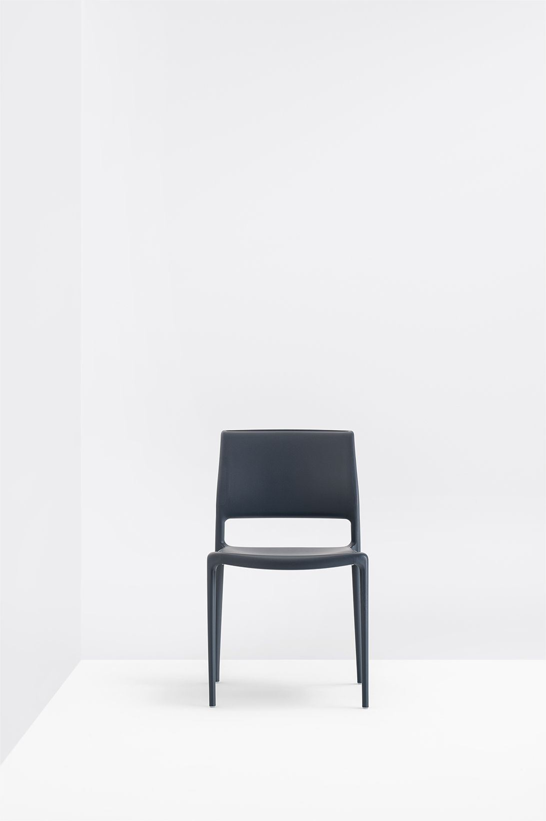 Ara is a glass fiber reinforced polypropylene chair. Due to its durability and non-deformability, this piece is also suitable for outdoor use. The distinctive feature is the upper part designed to create a handle for ease of handling and a conical foot shape that adds elegance. The chair is UV resistant and stackable. For greater seating comfort, it can be combined with a textile seat (ARA 310.3).