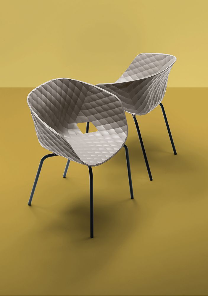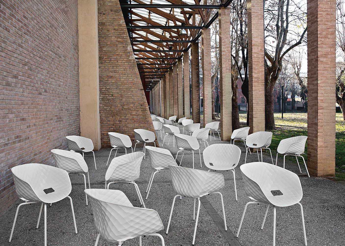 Uni-ka collection is full of pieces that are stylish and practical. The steel frame and the body made of highly resistant polypropylene provide practicality. The chair style is complemented mainly by the imitation of the luxury padding texture as well as the glossy finish. The chair is suitable for both indoor and outdoor use.