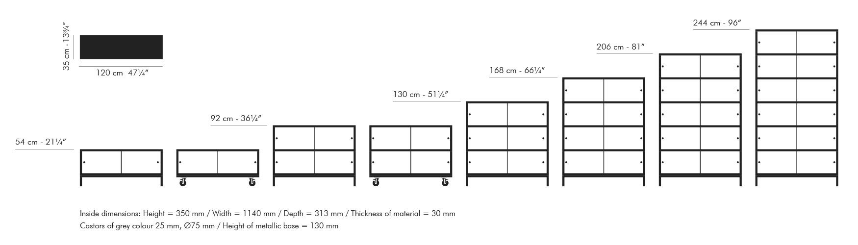 Na výběr je 1-policová až 6-ti policová varianta. K 1 unit a 2 unit systému je možné zvolit variantu s kolečky.