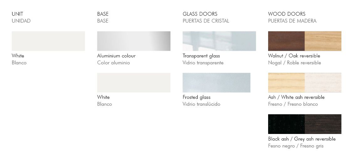 Zvolit si můžete jednotku s klasickými policemi, pokud ovšem chcete své drobnosti skrýt před zraky ostatních, každá z polic je opatřena drážkami na jezdící dveře, které je možné přikoupit v několika materiálových a barevných provedeních.