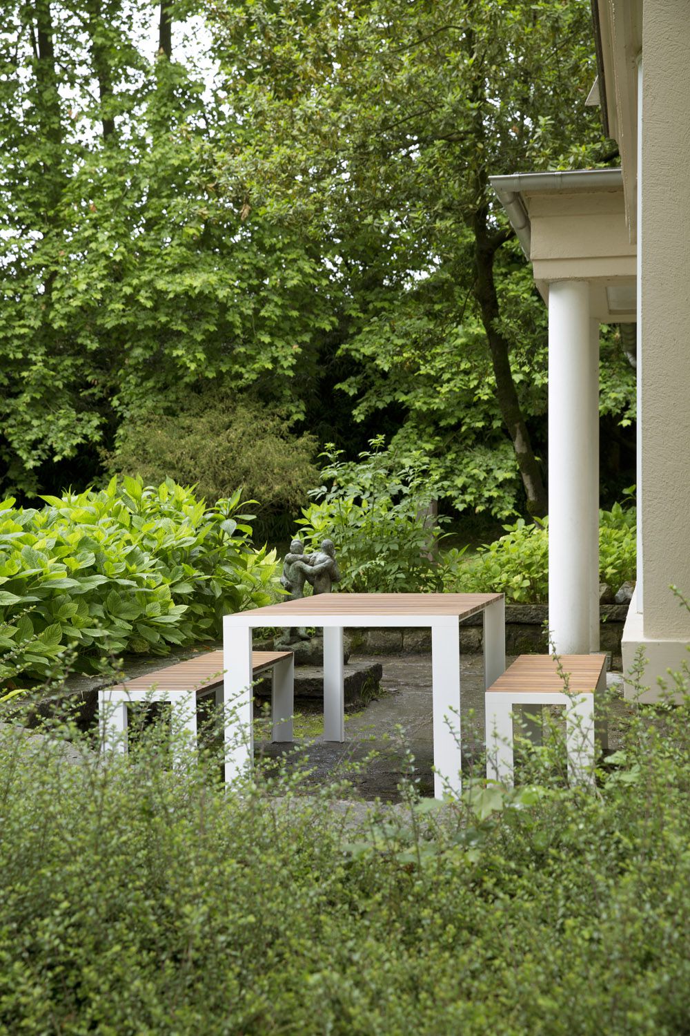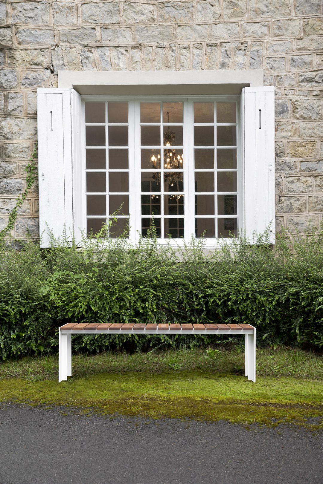 Díky odolnosti materiálu je možné lavici použít i jako venkovní nábytek.