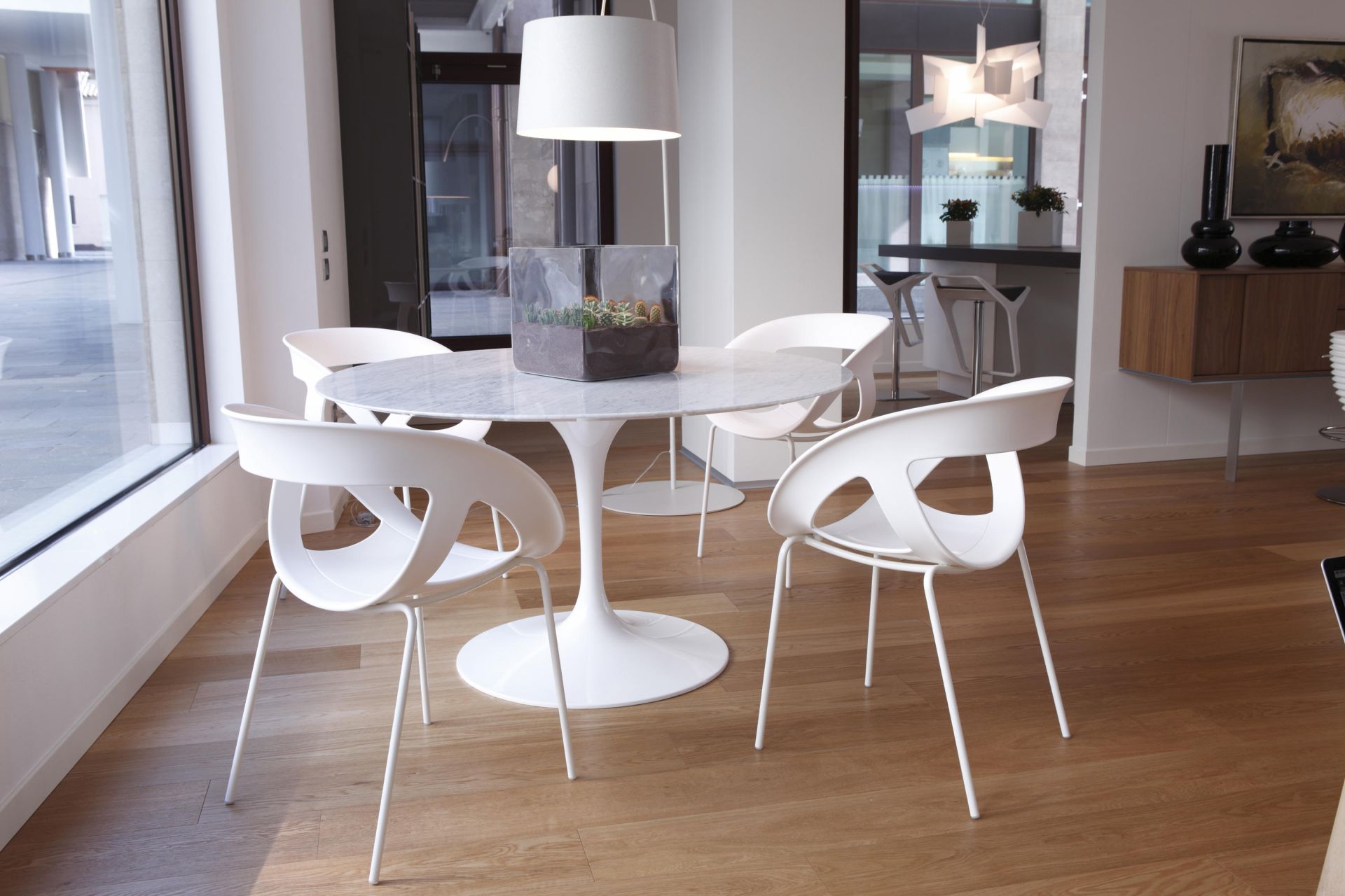 Jídelní stůl Saturno - Elegantní stůl v minimalistickém designu. Perfektní kulatý stůl se nehledá snadno. My Vám přinášíme čisté linie, několik barevných provedení v klasických odstínech a široký výběr průměrů. Tak, aby Saturno zapadl do každého interiéru!