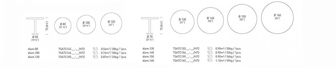 Několik průměrů - 80 cm, 100 cm, 120 cm, 130 cm, 140 cm, 150 cm, 160 cm