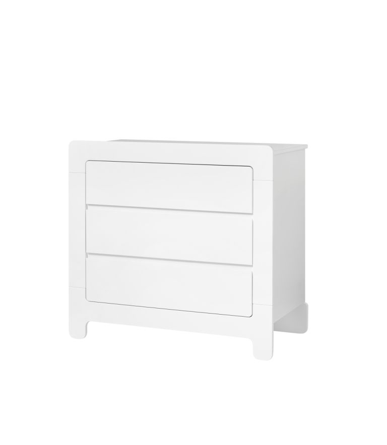 Komoda poskytne spoustu úložného prostoru pro oblečení a další doplňky potřebné při péči o miminko. Disponuje tichým samozavíracím mechanismem, díky kterému je její užívání příjemné a pohodlné. Ke komodě je možné přiobjednat přesně padnoucí přebalovací pult.