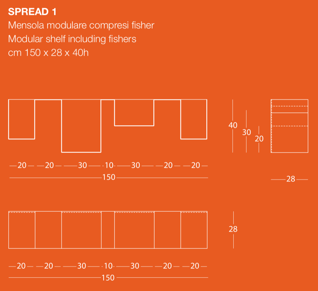 Spread 1 je modulární police, která poslouží jako úložný prostor pro vaše nejoblíbenější knihy a jiné předměty, které chcete mít stále po ruce. Kombinací různých modulů získáte originální závěsnou knihovnu. Polici lze na zeď umístit horizontálně či vertikálně.