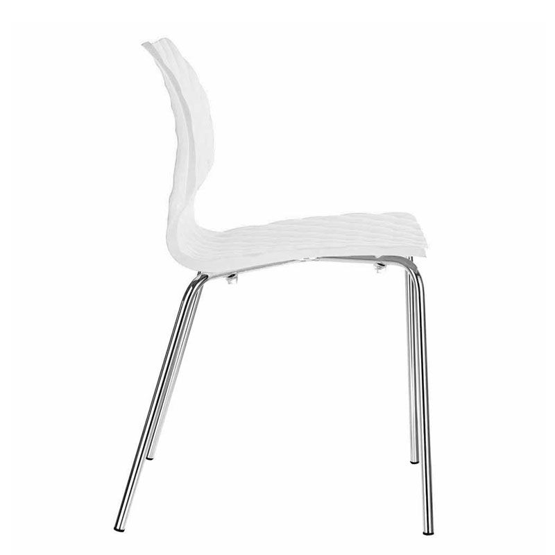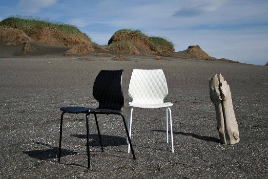 Kolekce Uni, která dokonale vyvažuje styl a praktičnost se stala ikonou firmy Et.al. Poznávacím znamením židličky je imitace textury luxusního polstrování. Styl je dotvářen také lesklou povrchovou úpravou zadní části. Praktičnost zabezpečuje ocelová podnož a tělo z vysoce odolného polypropylenu dostupného v 12 barvách. Vhodná jak pro vnitřní, tak i pro venkovní využití.