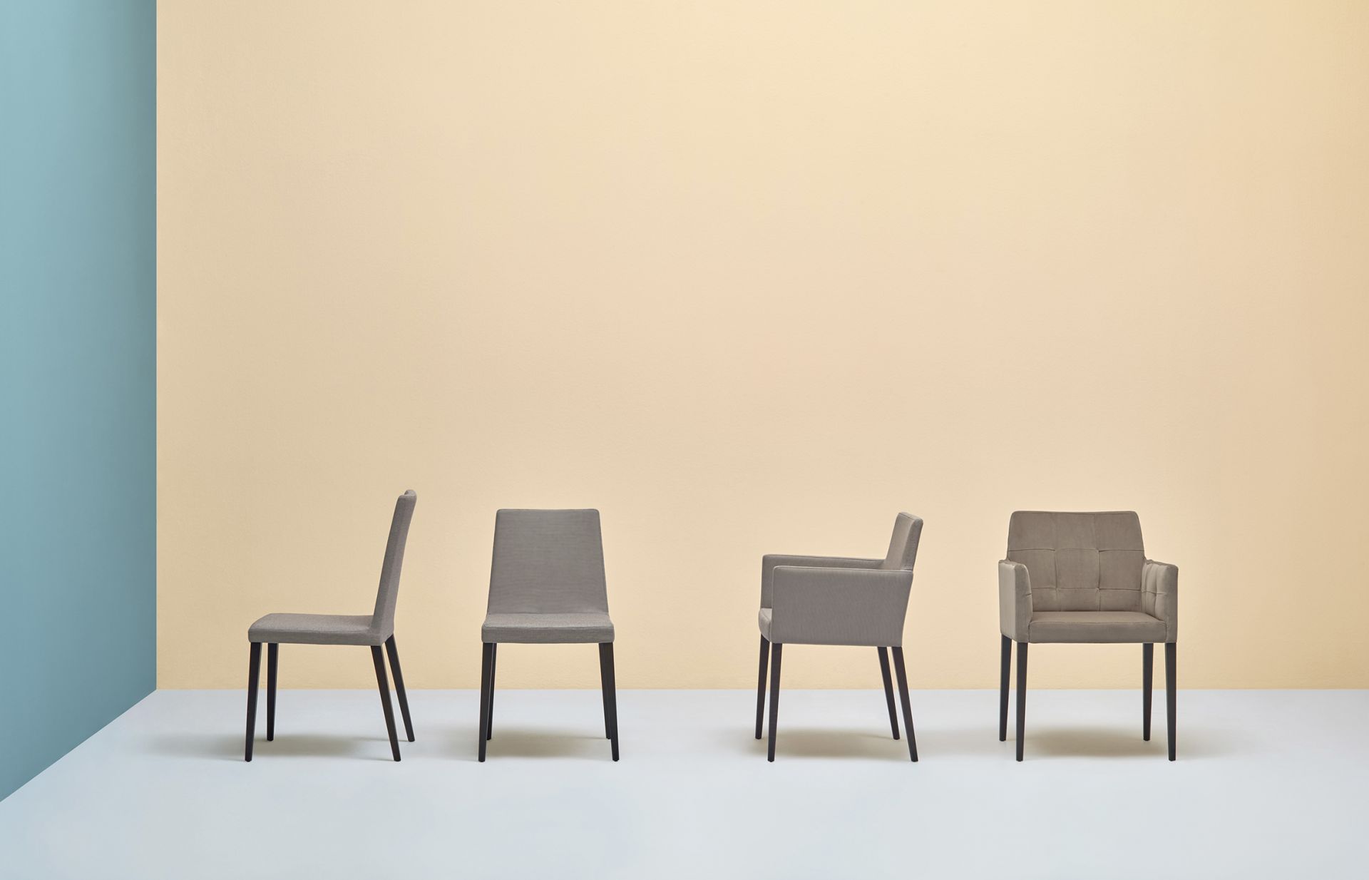 Řada Dress přináší nesmrtelnou kombinaci dřevěné podnože a jednoduchého čalouněného těla. Štíhlost nohou z dubového dřeva je výsledkem jejich postupného přechodu z hranatého do kulatého obvodu. Ladná podnož neubírá na pevnosti a stabilitě, díky čemu je židle vhodná nejen do domácích interiéru. Výborně vynikne také v zasedacích místnostech nebo restauracích. Židle 531 má pro lepší komfort prodloužené opěradlo.