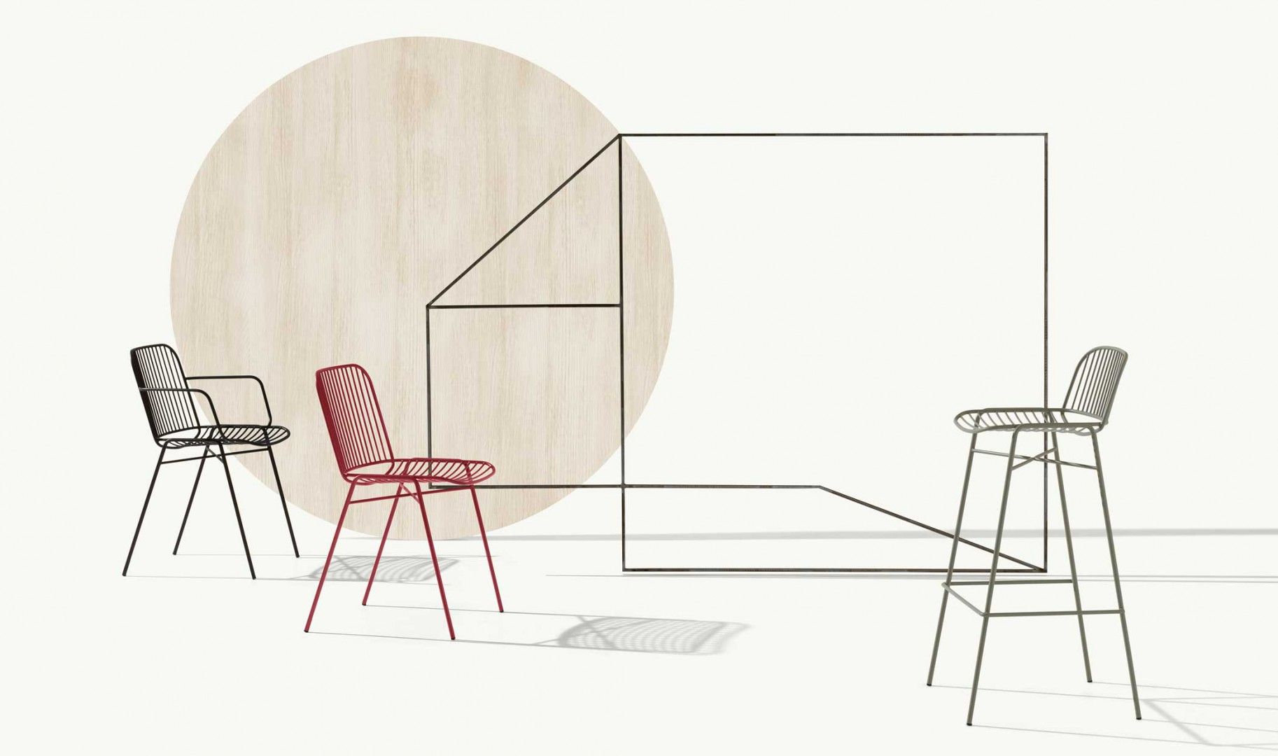 Kolekce kovových židlí Shade byla vytvořena pomocí techniky svařování ocelových drátů. Originální design je charakteristický změnou vzoru v závislosti na úhlu pohledu. Kombinace pevných a prázdných části dodává celému kousku lehký nádech který se přenáší i do okolního prostředí.