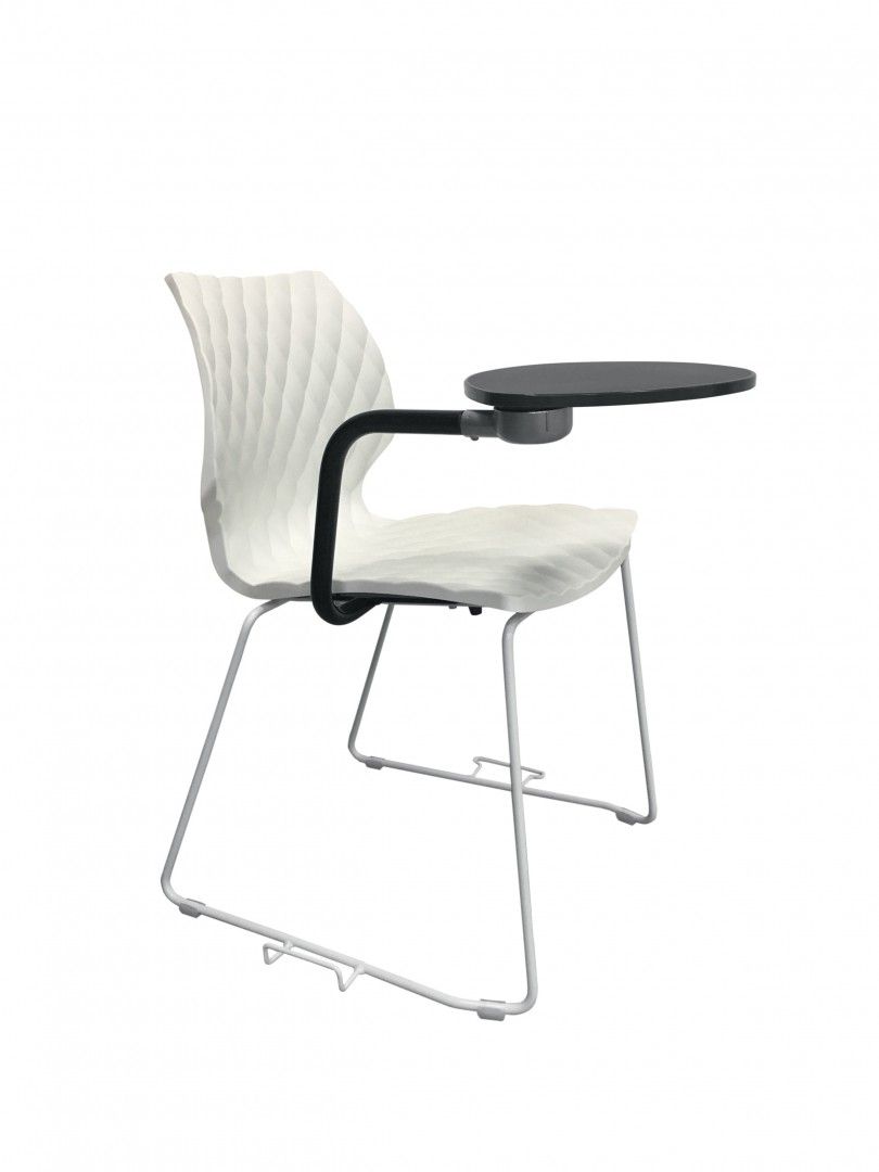 Kolekce Uni, která dokonale vyvažuje styl a praktičnost se stala ikonou firmy Et.al. Poznávacím znamením židličky je imitace textury luxusního polstrování. Styl je dotvářen také lesklou povrchovou úpravou zadní části. Praktičnost zabezpečuje ocelová podnož a tělo z vysoce odolného polypropylenu dostupného v 12 barvách. Židle Uni 552g-t má konferenční stolek ideální pro konferenční nebo vzdělávací místnosti. Můžete jí také objednat v provedení se spojovacím zařízením.