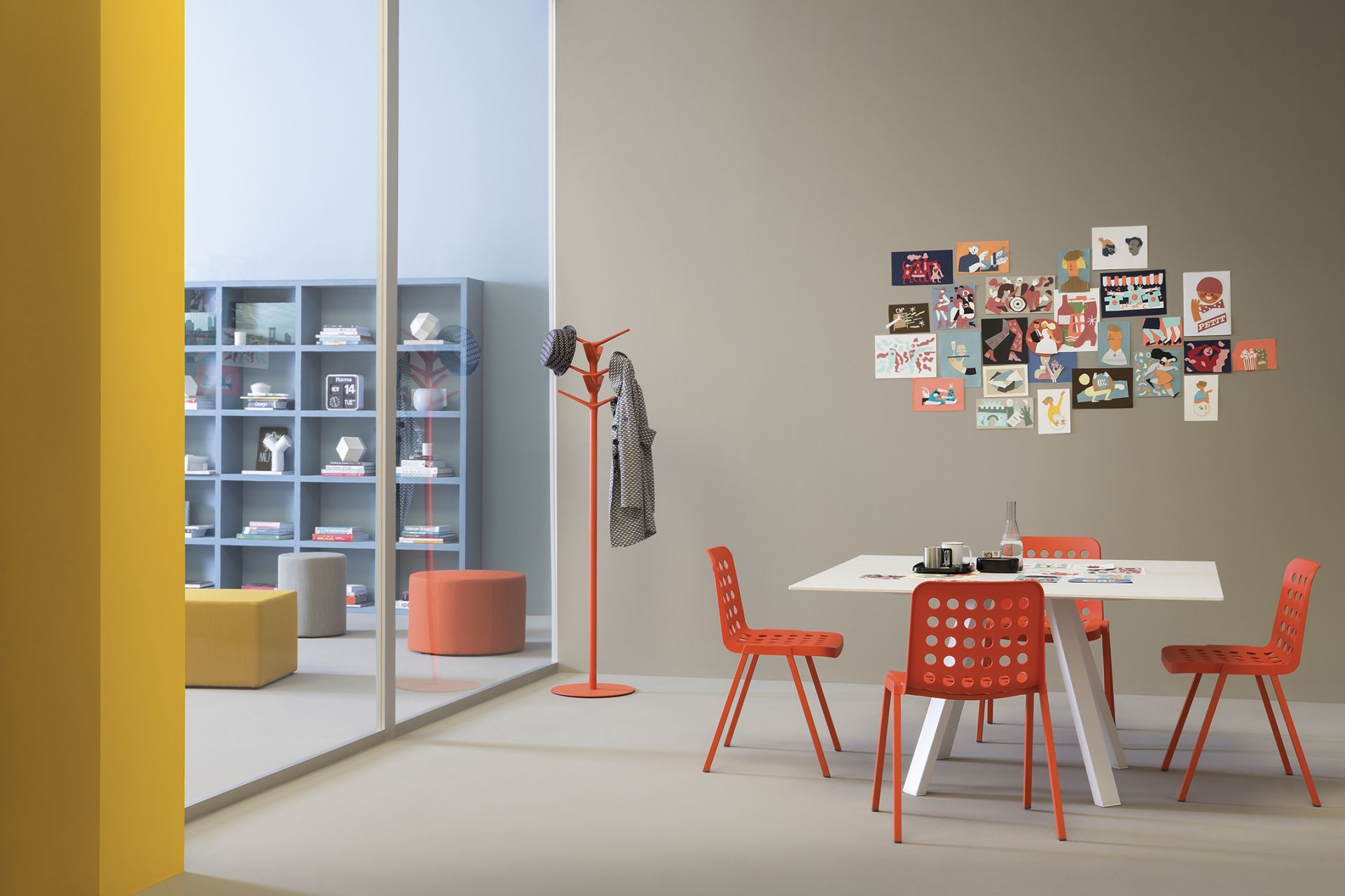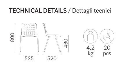 Geometrické tvary, to je to co charakterizuje židli KOI-BOOKI. Na první pohled upoutá, tvarem, praktičností ale také barevným provedením. Kousek je vyroben z polypropylenu a extrudovaného hliníku. Židle jsou stohovatelné a můžou být spojeny spojovacím zařízením. V balení 4 kusy. Je možné zakoupit i podsedák KOI-BOOKI 370.3