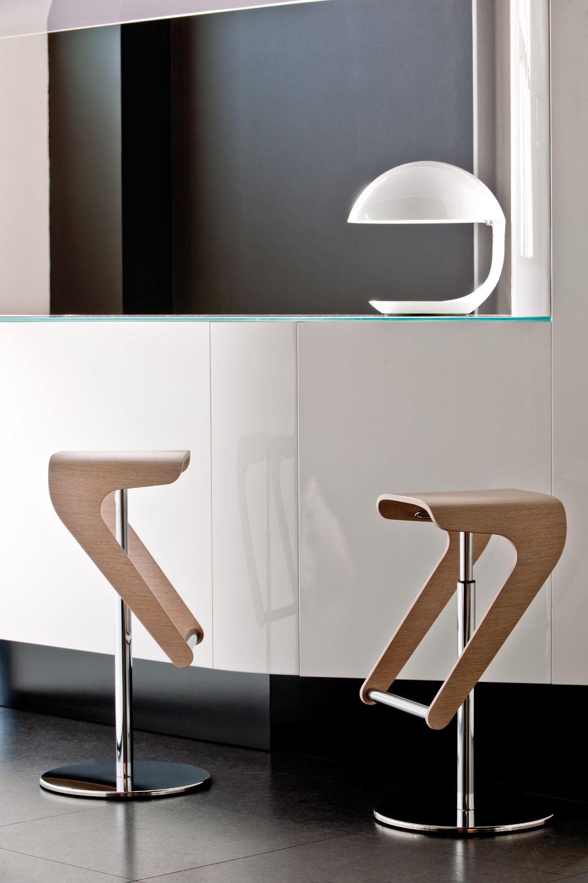Barová židle WOODY má luxusní a zároveň hravý design. Židlička je otočná a může být i výškově nastavitelná. Centrální podnož je k dispozici v chromu nebo satinované oceli. Sedák židličky je k dispozici jako dubová překližka nebo lamina. Díky těmto širokým možnostem má skvělé využití v bytových i veřejných prostorech.