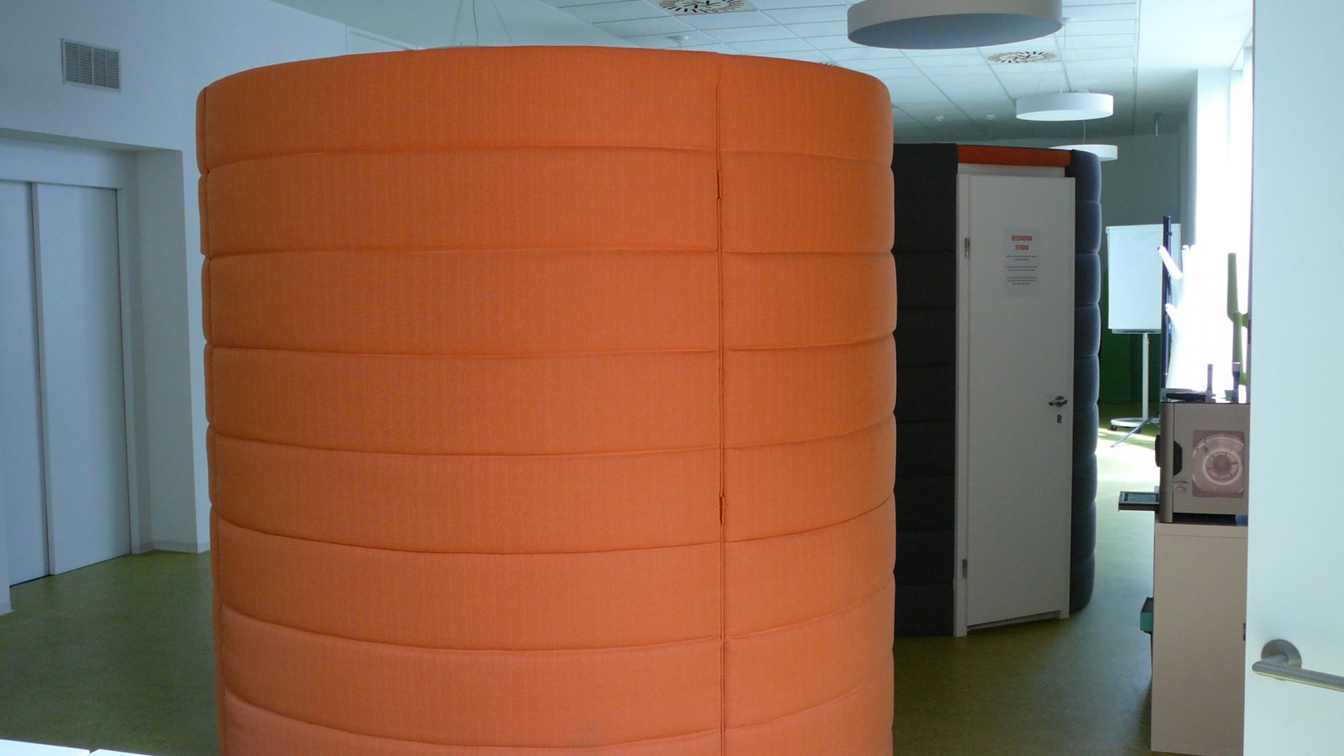V době open space kanceláří nabírají prvky, které poskytují soukromí na důležitosti. Dáváme do pozornosti phoneboxy, které jsou prostorné, mají moderní design a poskytují komfort a soukromí. Boxy jsou oválné, průměr 2 m.