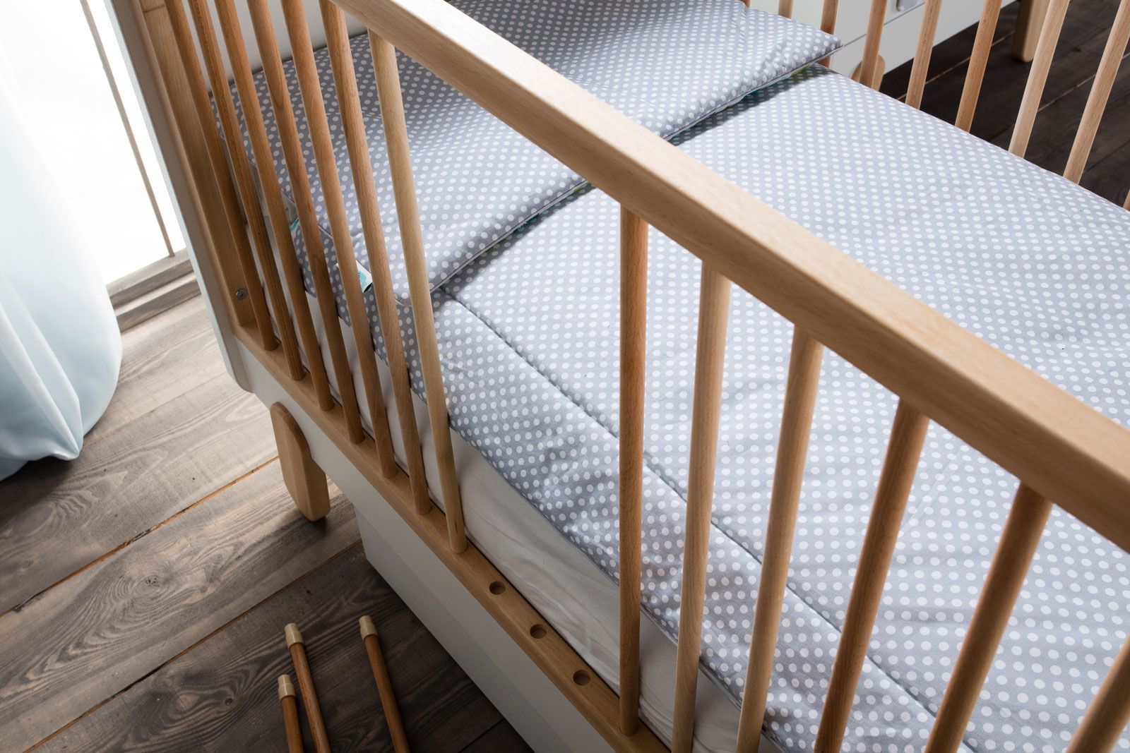 Dřevěná dětská postýlka je součástí kolekcí I’ga od firmy Pinio. Matrace může být umístěna ve třech úrovních. Postýlka má také dvě odjímatelné příčky, takže se do ní samostatně dostane i starší dítě. Součástí balení není matrace ani zásuvka pod postel. Postýlka je dostupná ve 2 rozměrech.